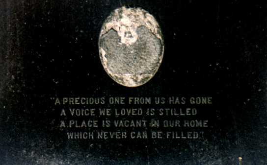 : porcelain photo space (broken by vandals) and epitaph