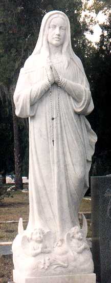 | The daughter, Valerie Sue, was killed while riding with a friend. The vehicle's speed was too high while exiting from an interstate. The car rolled and killed Valerie Sue. The driver survived. The statue, shown below, was commissioned and based on her appearance. |