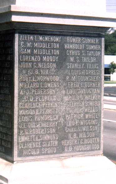 | James Adams Donald Ansley Norman Badger Reuben Baker Fred C. Banta John D. Barker G.W. Bates Earl G. Bell George Berriman R.G. Berry Urban S. Bird Algy K. Bivens Arthur A. Bivens Leonard Bozeman W.R. Bozeman Robert L. Bradley Jack L. Brantley |