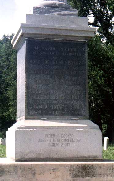 Memorial Highway is reverently dedicated as a road of remembrance to those who gave their lives for Liberty in the World War 1917-1918 By the people of Tampa and Hillsborough County Through the Tampa Rotary Club 1921 |